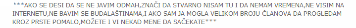 Odavno planiram da uprostim i to što je napisano,ali nemam vremena,kako me je jedan limundovac kontaktirao da me neko ovde proziva,samo zbog toga se obraćam.
