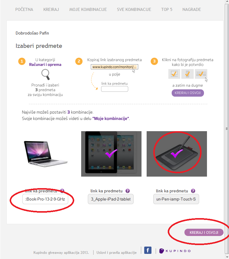 Ukoliko još uvek niste postavili svoju kombinaciju i tako se uključili u trku za tabletom, pogledajte naše slikovito uputstvo za učešće u Kupindo giveaway aplikaciji.