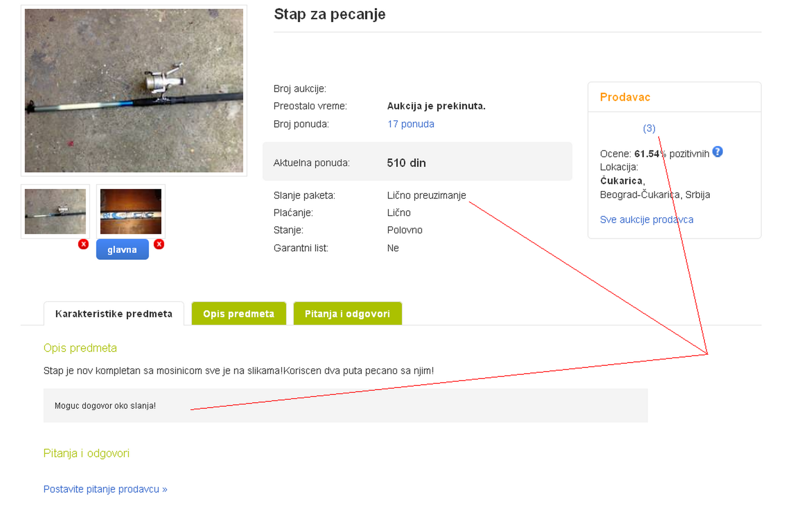 predlažem da pre licitiranja pošaljete poruku prodavcu kako biste se raspitali
