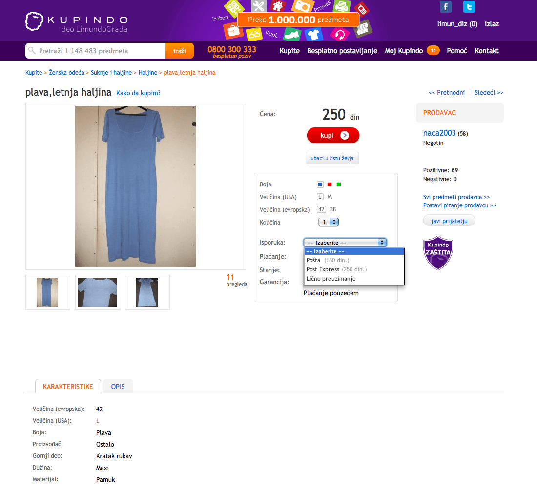 Konkretan primer: Kupila sam torbu preko Limunda. Onog trenutka kada je istekla aukcija, po običaju, kontaktirala sam prodavca, potvrdila svoje podatke i tražila broj računa da uplatim ranije na račun ili putem Limundo keša. Prodavac je to odbio, uz konstataciju da ima puno predmeta i da šalje samo pouzećem… Istog trenutka odgovaram da mi to ne odgovara, da nema ko da preuzme pošiljku, te da preuzima komšinica kojoj ne mogu da ostavim novac, a da ne govorim o tome i da je ta varijanta znatno skuplja…