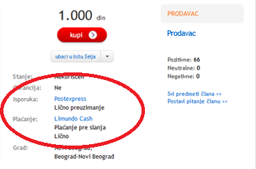 Detaljno pročitajte opis predmeta i uslove koje je prodavac naveo kada je u pitanju plaćanje i slanje predmeta, kako ne biste prevideli informacije koje mogu biti od značaja za obavljanje saradnje (npr. na koji način se šalje predmet, detaljno stanje predmeta i slično).