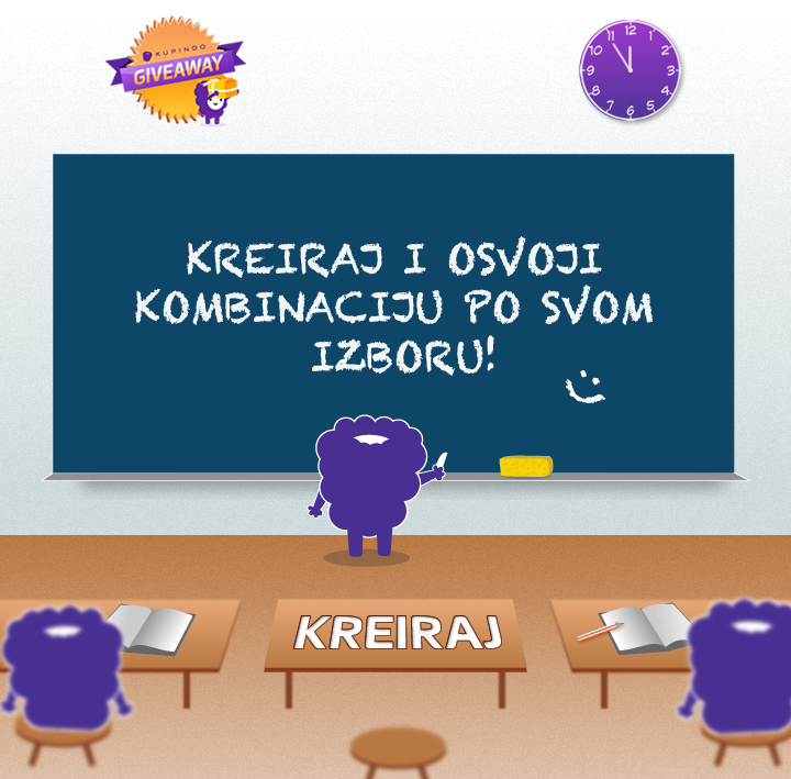 Zadatak: odaberite koja biste tri artikla sa Kupinda kupili za školu, podelite svoj predlog sa vašim Fejsbuk prijateljima, prikupite najveći broj glasova i osvojite vrednu nagradu. Posebnu nagradu dodeljujemo za najkreativniju kombinaciju, a učesnik koji bude imao najviše sreće, osvaja kombinaciju predmeta koje je odabrao na poklon!