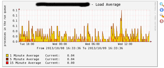 Ove grafike možete zumirati, kao i listati kroz istoriju, tako da lako možete prići bliže i imati detaljni uvid u trenutku problema, a sa druge strane, prikaz kroz istoriju daje vam lep način da vidite trendove kako vam se sistem kreće. Specijalna osobina RRD-a je da, kako vreme prolazi, podaci gube na rezoluciji, tako da podacima od pre godinu dana ne možete prići tako detaljno kao onima od danas! Prednost ovog pristupa je u tome da, zahvaljujući tome, podaci ne rastu beskonačno, već imaju ograničen prostor na disku koji mogu da zauzmu! Iskreno, to je odličan trade-off, jer zaista nikad nisam došao u situaciju da mi treba detaljan zum u podatke pre 6 meseci – a zauzvrat imate fin alat koji neće nikad potrošiti previše resursa sistema.